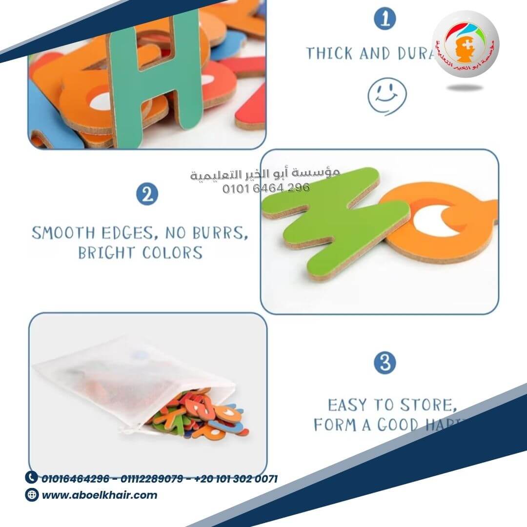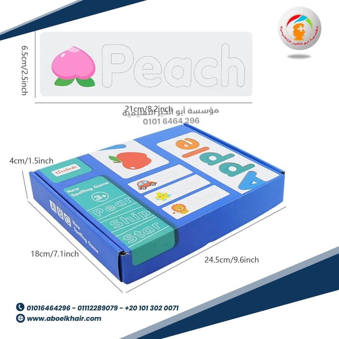 بطاقات عليها صور حيوانات وأشياء، تُسهّل تكوين الكلمات وتعلم حروف الأبجدية الإنجليزية. جميع الحروف ملونة بتصميم جذاب يلفت انتباه الطفل.