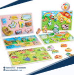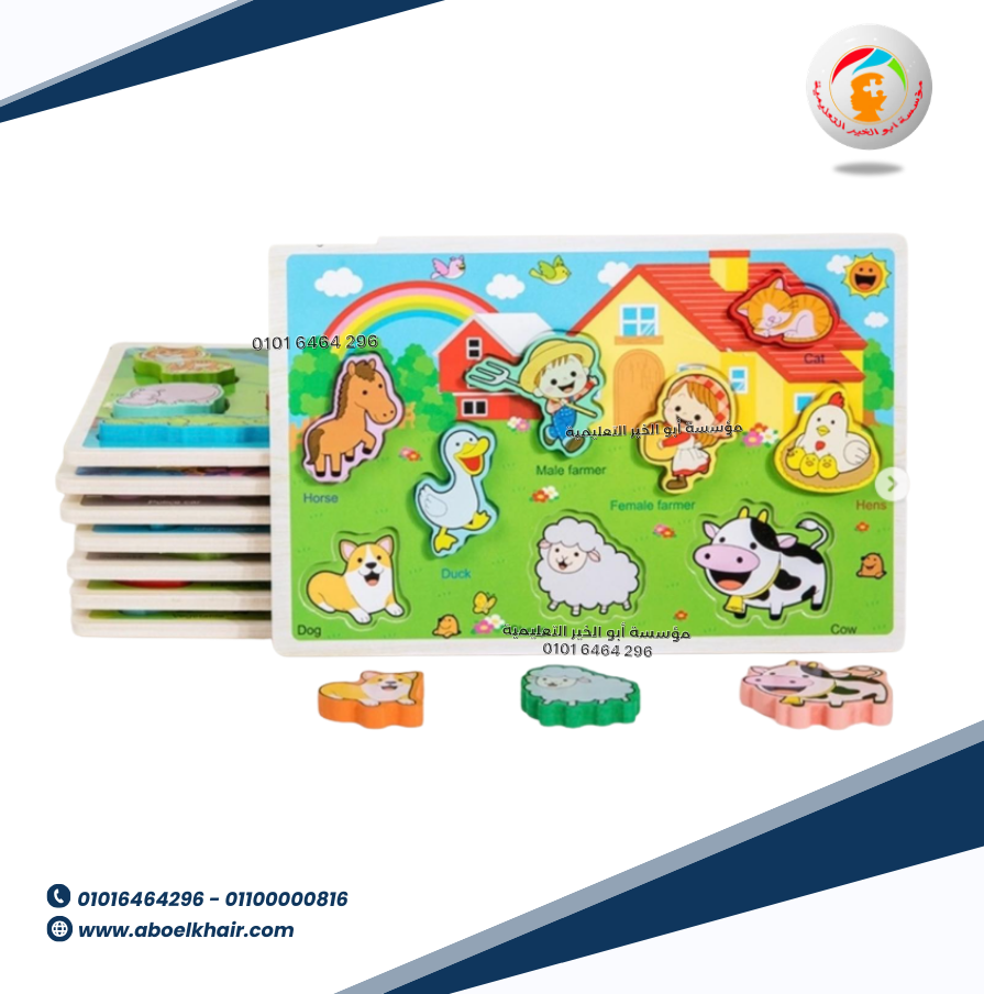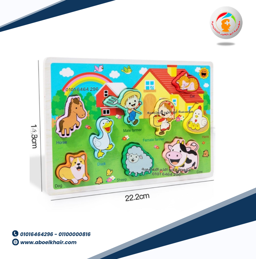 عبارة عن كارت خشبي عالى الجودة بها قطع مجسمة بسيطة سهلة التركيب مع بازل حروف بالعربي اسم شكل البازل
