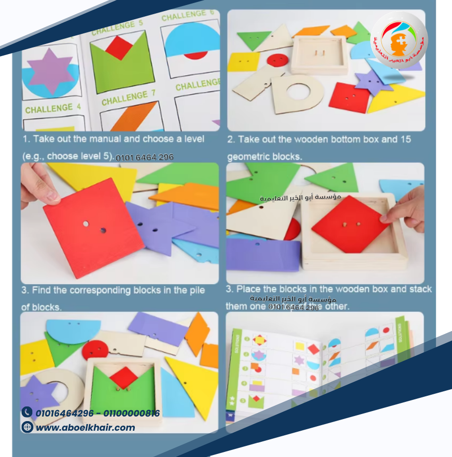 تطابق هندسي 4 عمود بيتم التطابق وفقا لعدد الثقوب فى منتصف الاشكال تستخدم أيضا القطع الخشبية فى تكوين اشكال مختلفة كما موضح فى الصور الوان جذابة لشد انتباه الطفل خشب عالى الجودة