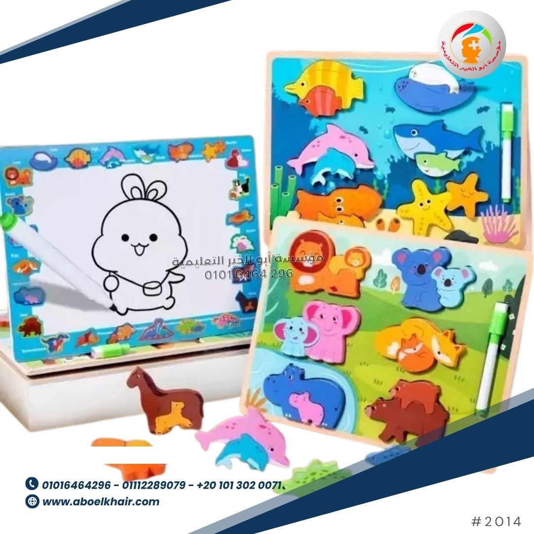 • بورد ٢ في ١: تحتوي اللعبة على مكعبات بازل خشب ثلاثية الأبعاد ولوحة رسم ( وايت بورد ) ، مما يمنح الأطفال متعة وتعلمًا مضاعفين. تتضمن اللعبة قلم تحديد وممحاة.