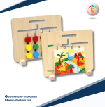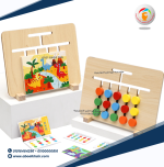 لعبة تعليمية تمثيلية تساعد الأطفال على استكشاف الأشكال الهندسية والألوان بطريقة تفاعلية وممتعة. تحتوي اللعبة على أعمدة خشبية ملونة مع أشكال هندسية متنوعة مثل المربعات والمستطيلات والمثلثات والدوائر.
