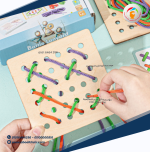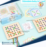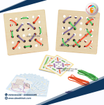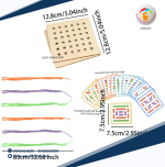لا توفر هذه اللعبة الممتعة التسلية فحسب، بل تساعد أيضًا في تنمية المهارات الحركية الدقيقة للأطفال أثناء تمريرهم الخيط عبر الثقوب الموجودة على اللوحة باتباع الأنماط المختلفة على البطاقات المرفقة.