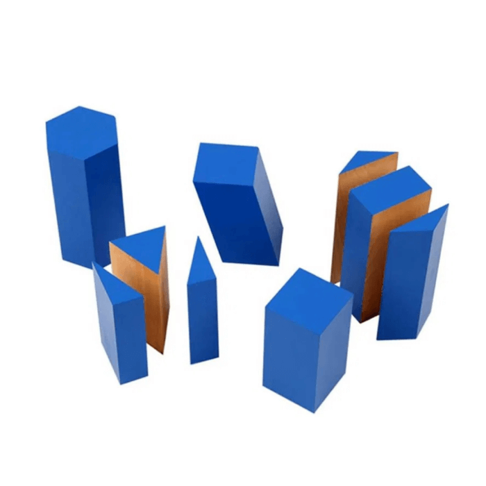 Parallelepiped, and quadrangular prism, each crafted to aid in the development of fine motor skills and cognitive abilities. By interacting with these solids, children can grasp complex geometric concepts in a concrete and enjoyable way, laying a foundation for more advanced mathematical learning.