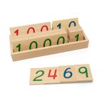 Large wooden number cards (1-9000) are displayed in an open