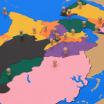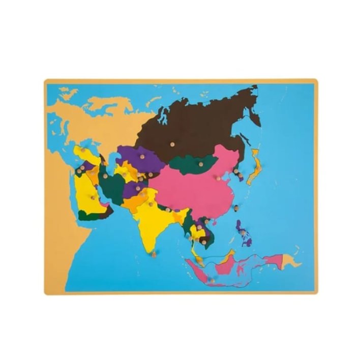 Wooden puzzle map of Asia measuring 57cm x 45cm with