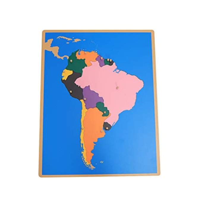 Wooden puzzle map of South America measuring 57cm x