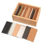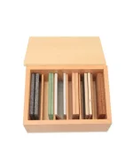 Thermic Tablets are a unique educational tool designed to refine a child’s thermic sense, which is their ability to perceive temperature. These tablets consist of pairs made from different materials such as cork, glass, wood, steel, and slate, each offering a distinct thermal experience. Through the use of these tablets, children learn to discern subtle differences in temperature, aiding in their sensory development and understanding of material properties.